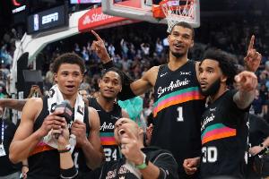马刺目前48胜17负,西部第二,距离第一的雷霆2.5个胜场。