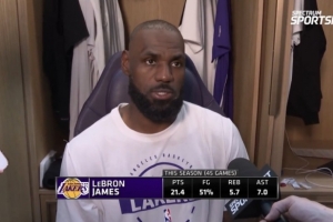 体育资讯3月13日讯 今日,湖人142-130主场击败公牛,取得四连胜。赛后,湖人球星詹姆斯接受了采访。