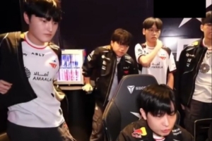 从转播镜头可以看到,Keria站着有一点吃力,需要用手撑着桌子。