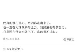 赛后邦本宜裕的妻子邦本萌发声,表示:我真的很不甘心,眼泪都流出来了。他一直在为球队拼尽全力,我知道他有多努力。只是现在什么也做不了,真的很不甘心。