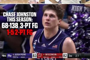 本场比赛,海波特大学后卫蔡斯·约翰斯顿成为球队取胜功臣,值得一提的是身为三分球专家的他本场比赛前赛季三分132投64中,两分却是4中0,本场比赛过后,三分变成138中68,两分5中1,而这两分就是最关键的上篮绝杀!