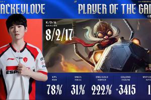体育资讯4月8日讯 今日LPL第二赛段比赛上,TES首局成功击败WE,赛后官方将首局MVP给到战绩8-2-17的JackeyLove!