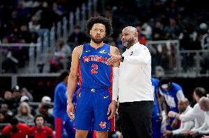 首节比赛,活塞全队的外线表现十分糟糕,三分球合计10中0,其中当家球星坎宁安个人4中0。